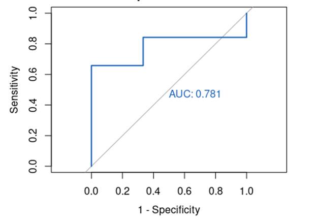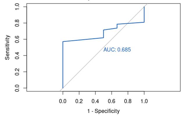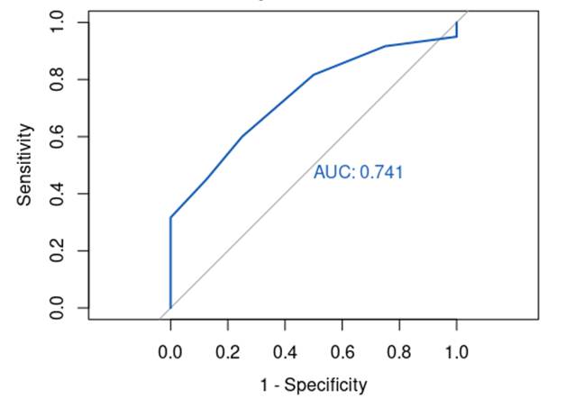 La FSH mostró un 78.07% (95% CI: 0.6228-0.9211) de probabilidad de predecir recuperación ovocitaria (Gráfico 5), la HAM un 68.05% (95% CI: 0.5397-0.8234) (Gráfico 6) y el CFA un 74.01% (95% CI: 0.5792-0.8844) (Gráfico 7).