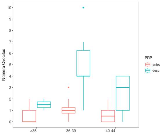 El número de ovocitos obtenidos post PRP fue mayor en los 3 grupos etarios.